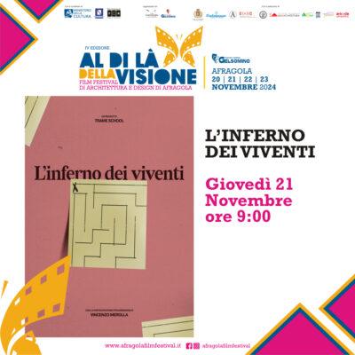 L’Afragola Film Festival (A.F.F.) si propone di valutare quelle storie che hanno una particolare attenzione verso l’architettura urbana, suburbana o periferica che plasmano, formano, raccolgono, respingono o esaltano le storie in esse contenute.
